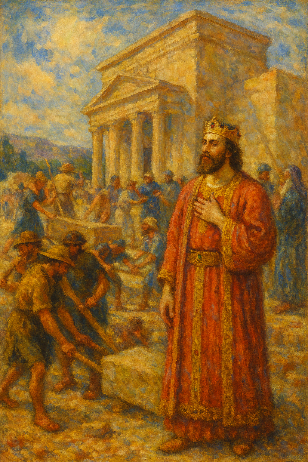 🎯 역대하 9:13-31 - 영광의 끝자락에서 배우는 지혜✒️ 글그림 디지털아티스트이은혜📖 본문 요약솔로몬의 시대는 부와 지혜가 절정에 이르렀습니다. 각 나라에서 금과 은, 향품과 말들을 가져왔고, 솔로몬의 궁전과 보좌, 그릇들은 모두 금으로 가득했습니다. 그의 명성과 지혜를 듣고 많은 왕들이 예물을 가지고 찾아왔습니다. 그러나 화려한 영광의 뒤에는 종말이 있었고, 결국 솔로몬은 조상들과 함께 장사되었으며 그의 아들 르호보암이 왕위를 이어받았습니다.🔍 시사점하나님이 주신 지혜로 시작된 솔로몬의 통치는 놀라운 부와 영광을 누리게 했습니다. 그러나 세상의 영광은 영원하지 않습니다. 그가 쌓은 재산과 권력은 그의 죽음과 함께 끝이 났고, 남은 것은 하나님이 주신 지혜와 그분 앞에서의 삶이었습니다. 우리 ..